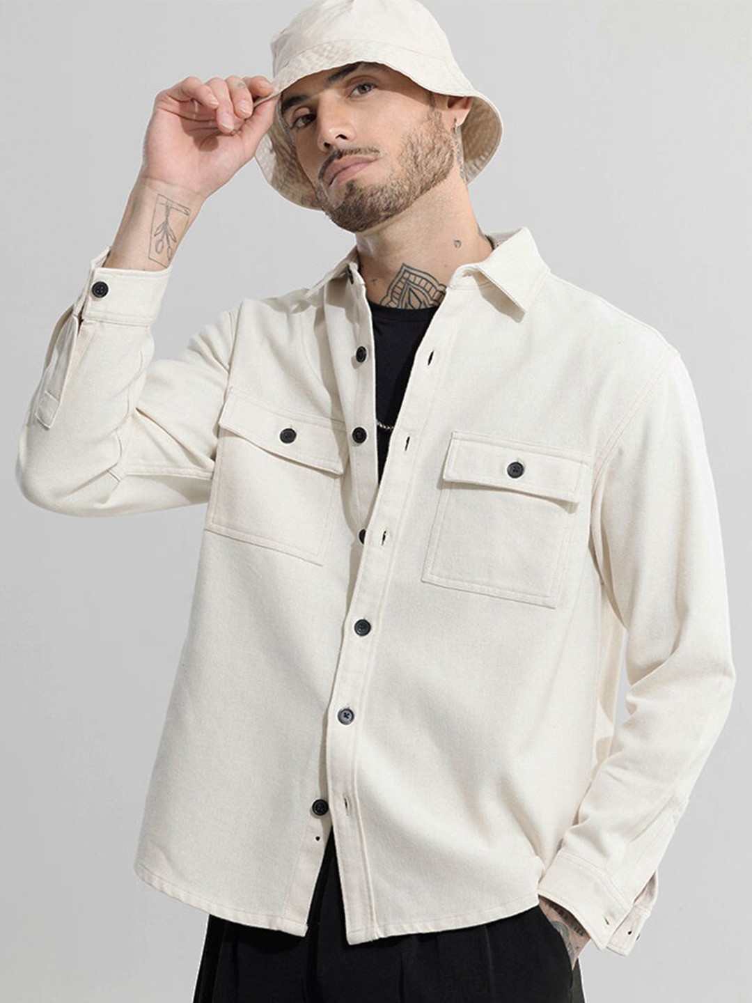 White solid Casual shirt ,has a spread collar, button placket, long regular sleeves, straight hem